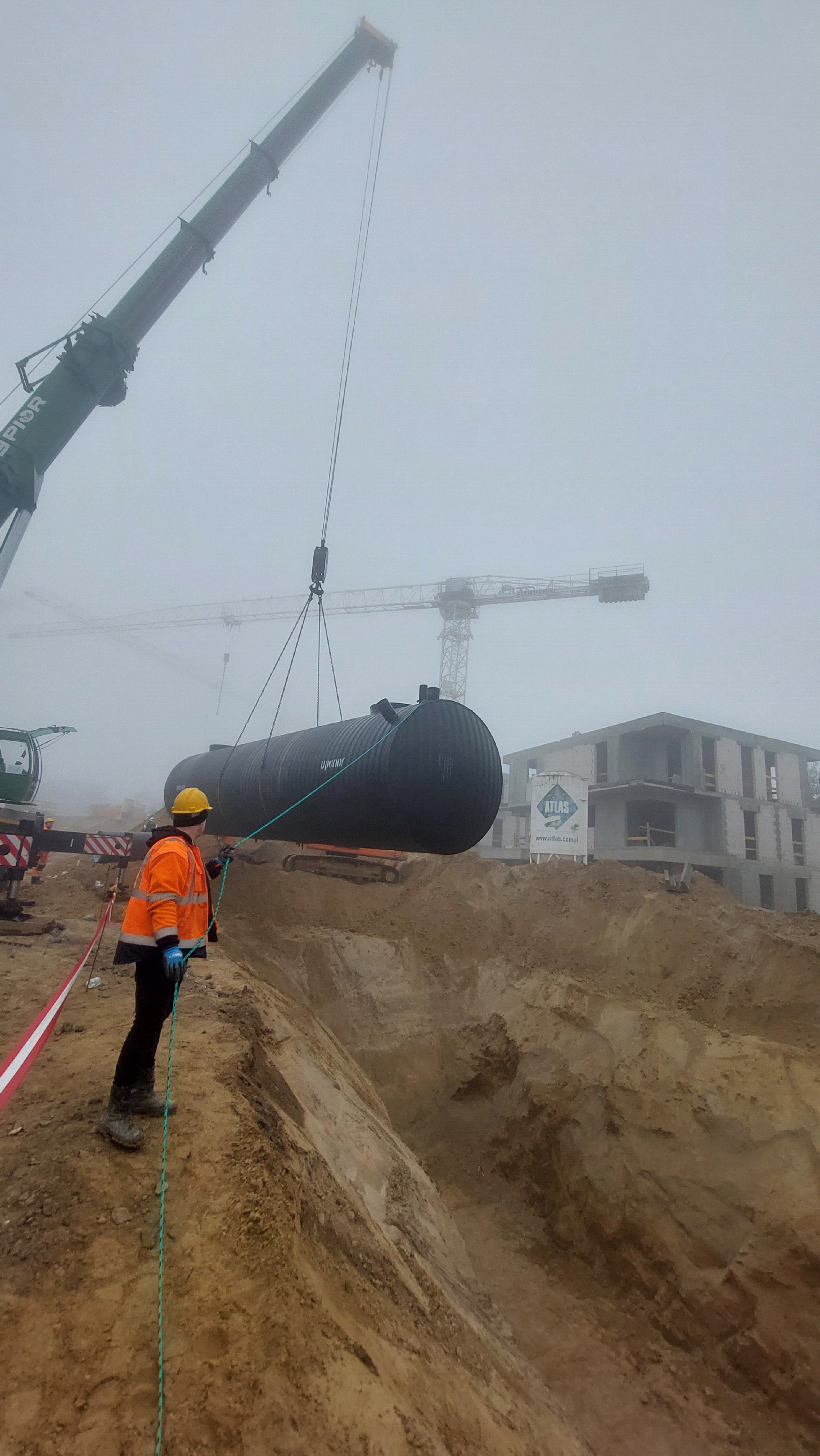 - montaż trzech zbiorników retencyjnych PEHD o pojemności 80 m3 każdy